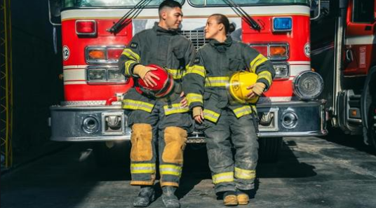 Unterender Feuerwehrkameraden helfen dem Weihnachtsmann