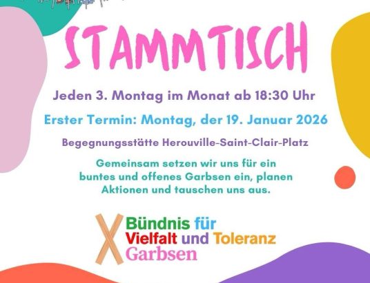 Das Bündnis für Vielfalt und Toleranz Garbsen ist eine überparteiliche, zivilgesellschaftliche Initiative, die aus Bürgerinnen und Bürgern sowie Vertreterinnen und Vertretern aus Kirchen, Vereinen, Verbänden und Parteien besteht. Wir setzen uns seit November 2024 für eine offene, demokratische und solidarische Stadtgesellschaft ein. Im Jahr 2025 haben wir bereits einige erfolgreiche Aktionen umgesetzt. Viele werden sich noch an die Menschenkette „Hand in Hand“ im Februar letzten Jahres erinnern. Auch die ganzjährig hergestellten und verteilten Holzkreuze kommen auf mittlerweile fast einhundert Exemplare. Daran wollen wir nun in 2026 anknüpfen. Wir freuen uns über jede Person, die sich aktiv am Bündnis beteiligen möchte.…