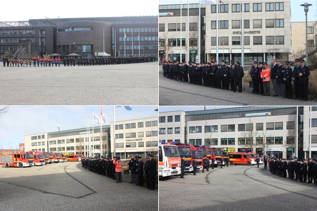 Auf dem Rathausplatz wurden die beiden scheidenden Ortsbrandmeister von den angetretenen Mitgliedern der aktiven Abteilung, der Alters- und Ehrenabteilung sowie von Kinder- und Jugendfeuerwehr, von Abordnungen der Partnerfeuerwehr aus Markoldendorf und des DRK Garbsen empfangen. Zuvor waren sie von einem Korso aus allen Fahrzeugen der Ortsfeuerwehr von zuhause abgeholt worden.
