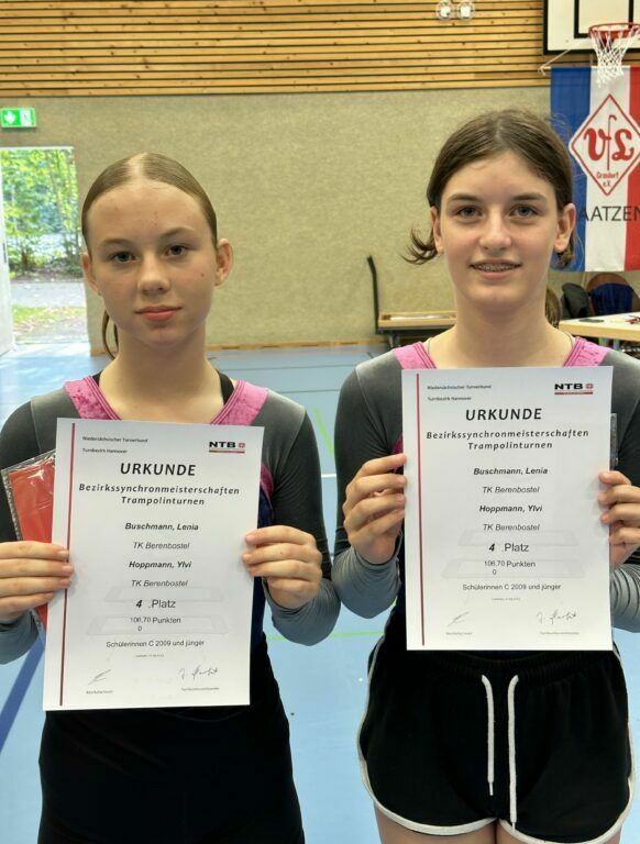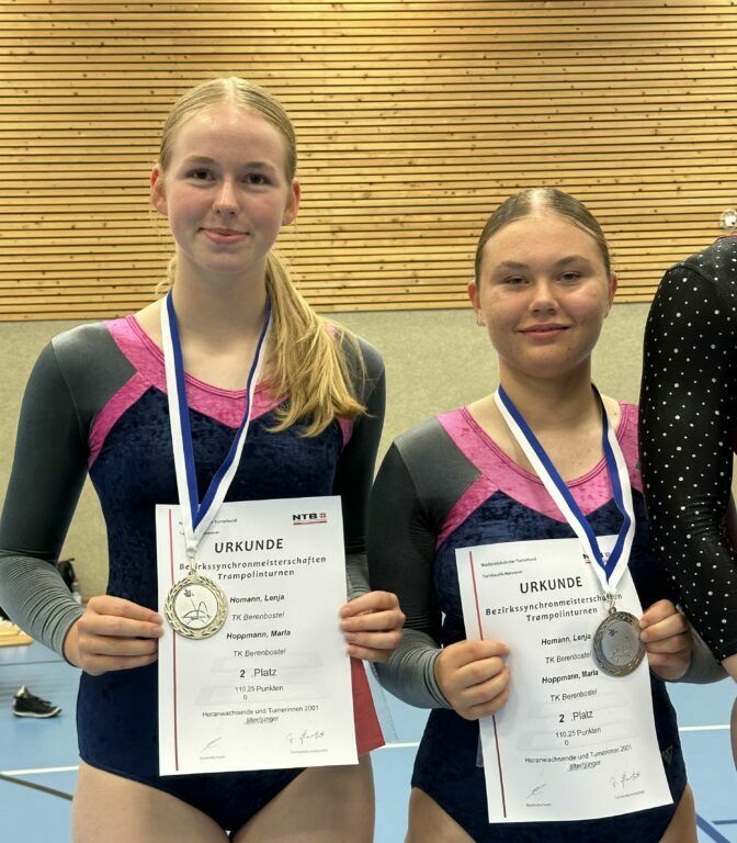 Am Nachmittag mussten die älteren TurnerInnen an den Start, Viktoria Milz und Sophie Schulz mussten bei den Schülerinnen 2007 und jünger nur ein Paar aus Poggenhagen vorbeilassen und freuten sich am Ende über einen hervorragenden 2 Platz. Lenja Homann und Marla Hoppmann traten bei den Turnerinnen gegen Aktive an, die zum Teil sehr viel älter waren. In diesem starken Feld freuten sich die beiden besonders über ihren 2 Platz.