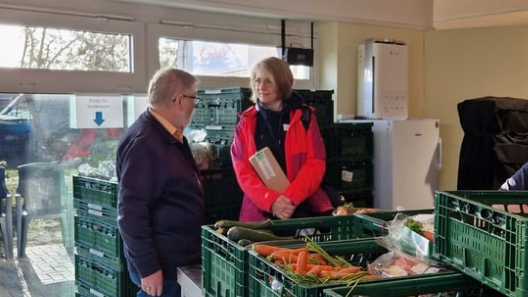 Manuela Francke (re.) lässt sich vom Leiter der Tafel Garbsen, Hartmut Matiaske in die Arbeit einweisen