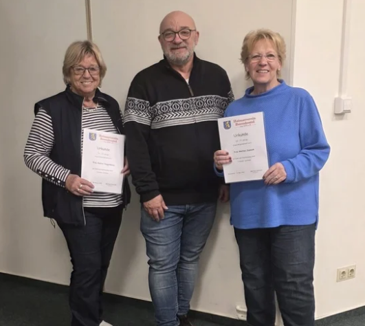 Zu guter Letzt wurden Marlies Jasiniok und Gudrun Roggenkamp für ihre 25jährige Mitgliedschaft durch Alfred Kubocz geehrt.