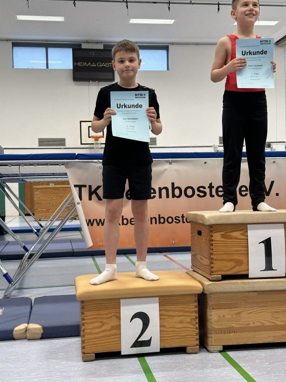 Als einziger Junge im Team präsentierte Lev drei saubere Übungen und durfte sich am Ende über einen zweiten Platz freuen. In der zweitjüngsten Altersklasse erreichte Veronica, die gerade erst wieder gesund geworden war, einen starken fünften Platz. Mia schaffte es bei ihrem Wettkampfdebüt sogar ins Finale der besten Acht und konnte damit einen besonderen Erfolg feiern.