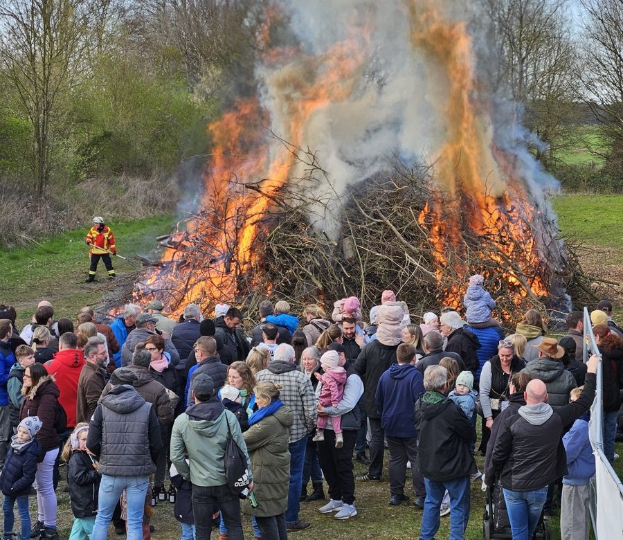 Viele werden die Jahrhunderte alte christliche Tradition des Anzündens eines Feuers zu Ostern nur als Grund zum Feiern sehen, mancher wird sich aber auch zu einem besinnlichen Moment hinreißen lassen. Zwischendurch ließ sich der Osterhase sehen und verteilte Süßigkeiten an die Kinder.