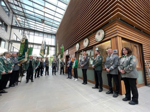 Unter Leitung von Andreas Eckwert, Vorsitzender des Stadtschützenverbands, wurden die Schützenscheiben durch die Vereine feierlich in der Rathaushalle angebracht und anschließend mit einem symbolischen Schluck begossen. Für das leibliche Wohl sorgte das Serviceteam Garbsen unter Leitung von Frank Muhlert mit frisch gezapftem Herrenhäuser, kühlen Getränken und Gegrilltem.