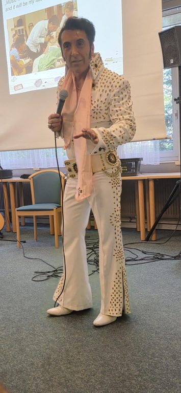 Der Künstler Tode Banjanski schlüpfte in eines seiner Elvis-Kostüme und brachte das Publikum zu Jubelstürmen und zum Tanzen. Nach über zwei Stunden gingen die Besucher zufrieden und auch nachdenklich nach Hause.