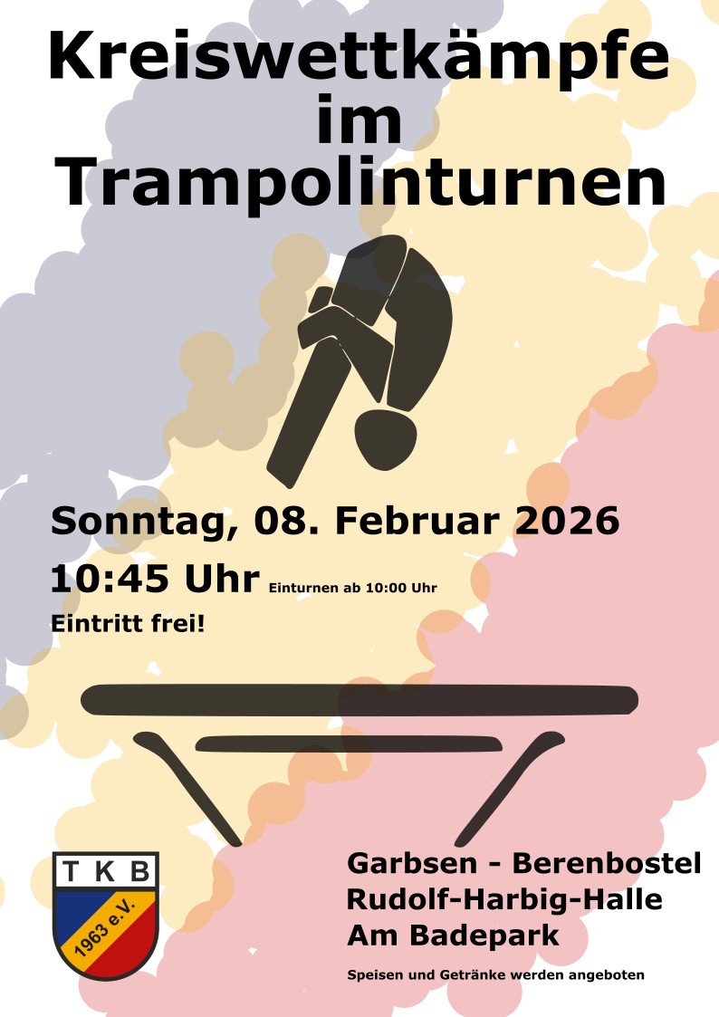 Wir laden herzlich zum Kreiseinsteigerwettkampf im Trampolinturnen des Turnkreises Hannover-Land und -Stadt sowie Gäste aus benachbarten Turnkreisen ein. Der Wettkampf richtet sich an Nachwuchs- und Einsteigerturnerinnen und -turner und bietet die Möglichkeit, erste Wettkampferfahrungen zu sammeln.